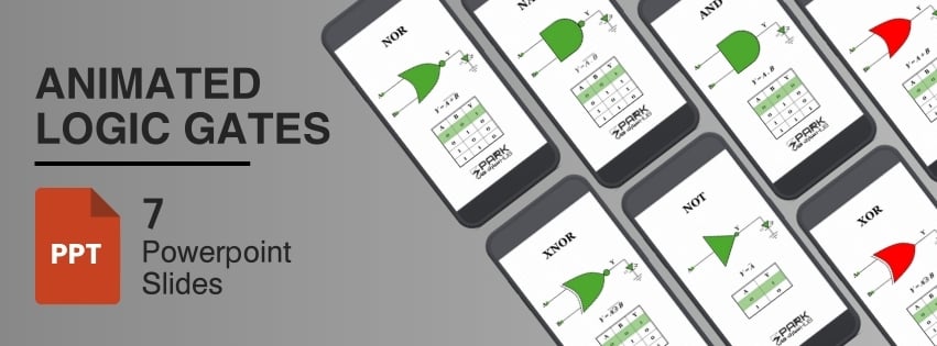 - 7 Animated Slides: Covering all the essential gates (AND, OR, NOT, NAND, NOR, XOR, XNOR).